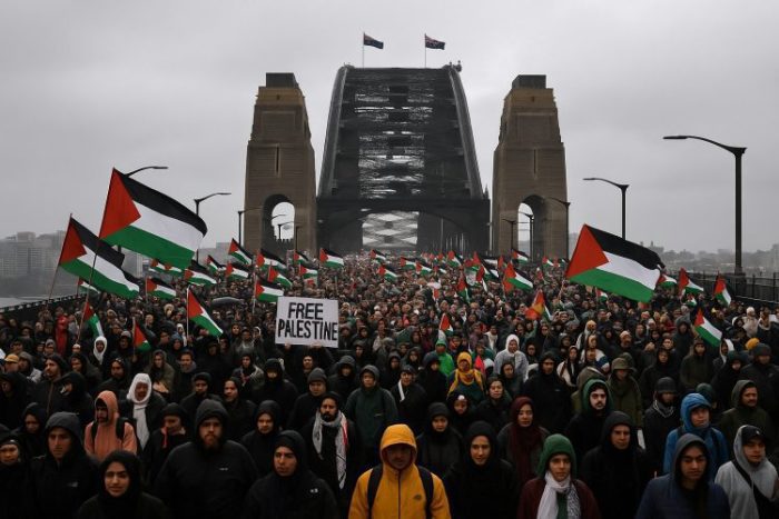 সিডনি, ৩ আগস্ট ২০২৫ — গাজায় গণহত্যার প্রতিবাদে এবং ফিলিস্তিনিদের প্রতি সংহতি জানিয়ে অস্ট্রেলিয়ার সিডনির হারবার ব্রিজে হাজার হাজার মানুষ পদযাত্রা করেছে। ‘মানবতার পক্ষে মিছিল’ শিরোনামের এই বিশাল বিক্ষোভটি শেষ মুহূর্তে সুপ্রিম কোর্টের অনুমোদনের পর অনুষ্ঠিত হয়।