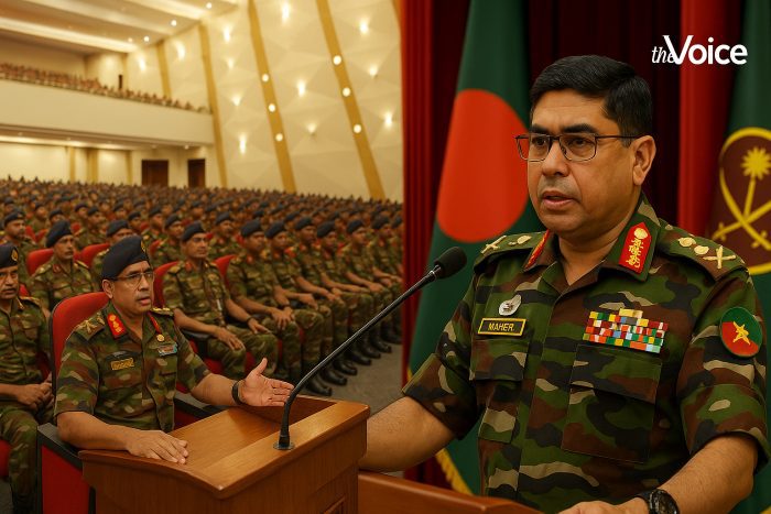 The remarks came at an “Officers’ Address” on Tuesday morning at Dhaka Cantonment, where senior commanders attended in person and officers from all cantonments and UN missions joined virtually.