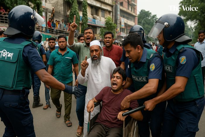 DHAKA, Bangladesh — Police in Bangladesh detained three supporters of the opposition Awami League on Sunday for chanting the slogan “Joy Bangla” during a protest in the capital, Dhaka. Among them was a disabled man whose reported beating has drawn widespread condemnation.