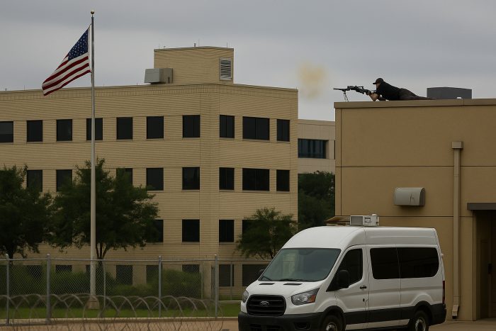 According to Dallas police, officers responded to an emergency call shortly before 7 a.m. after reports of gunfire at the ICE field office. Preliminary findings indicate Jahn opened fire from the roof of a nearby building, targeting both the ICE complex and a van in the facility’s sallyport.