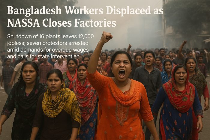DHAKA, Sept 25 (The Voice) — Bangladesh’s troubled garment sector was rocked this week after NASSA Group abruptly closed 16 factories, leaving about 12,000 workers out of work and sparking protests that led to seven arrests.