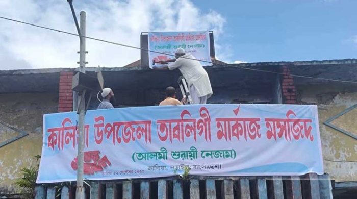 KALIA, Narail — Once a lively gathering spot for moviegoers in southern Bangladesh, the Alpona cinema hall now carries a different banner. The building has been converted into a Tablighi Markaz mosque, signaling both a change of function and a wider transformation of Bangladesh’s cultural landscape.